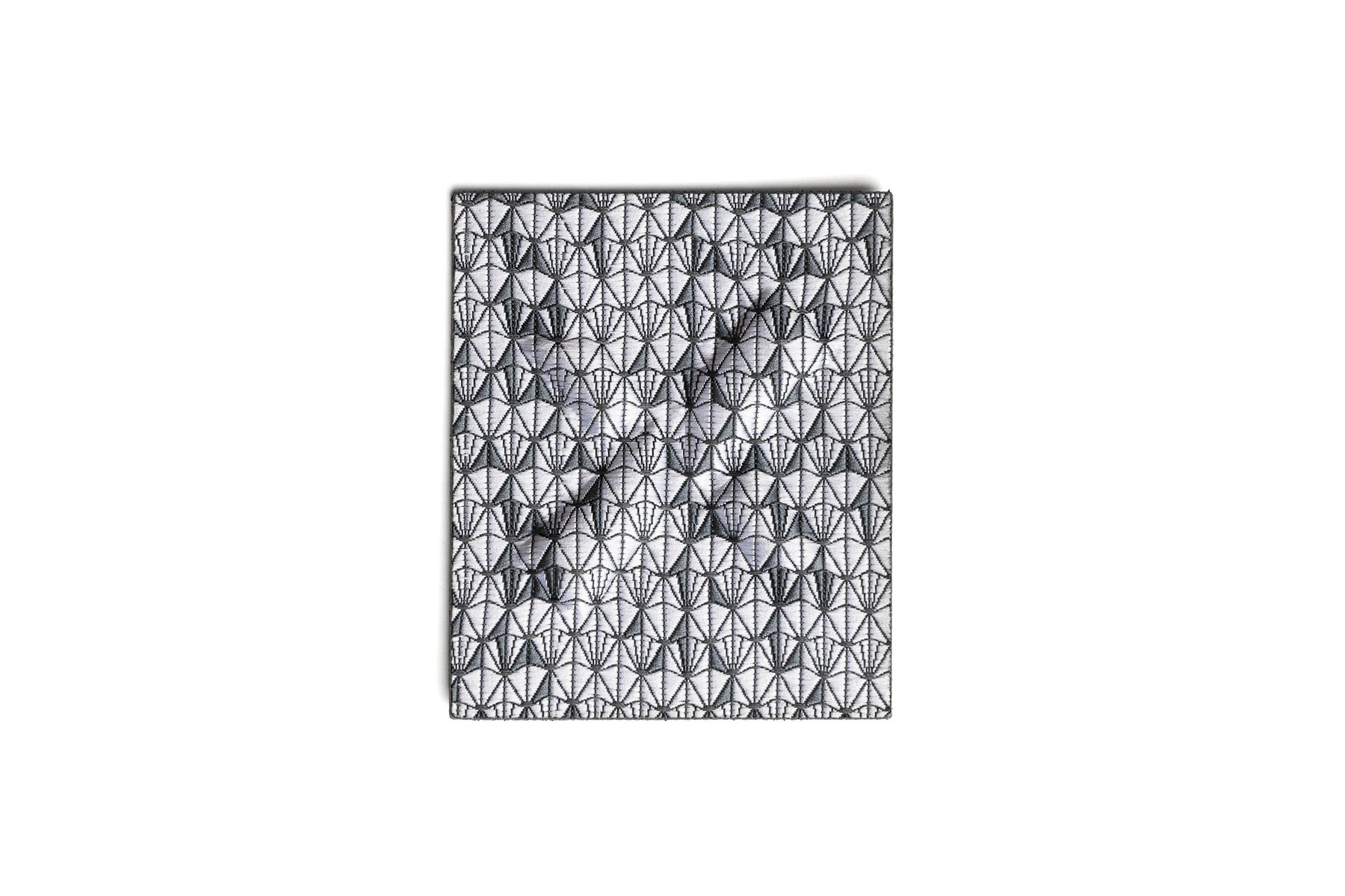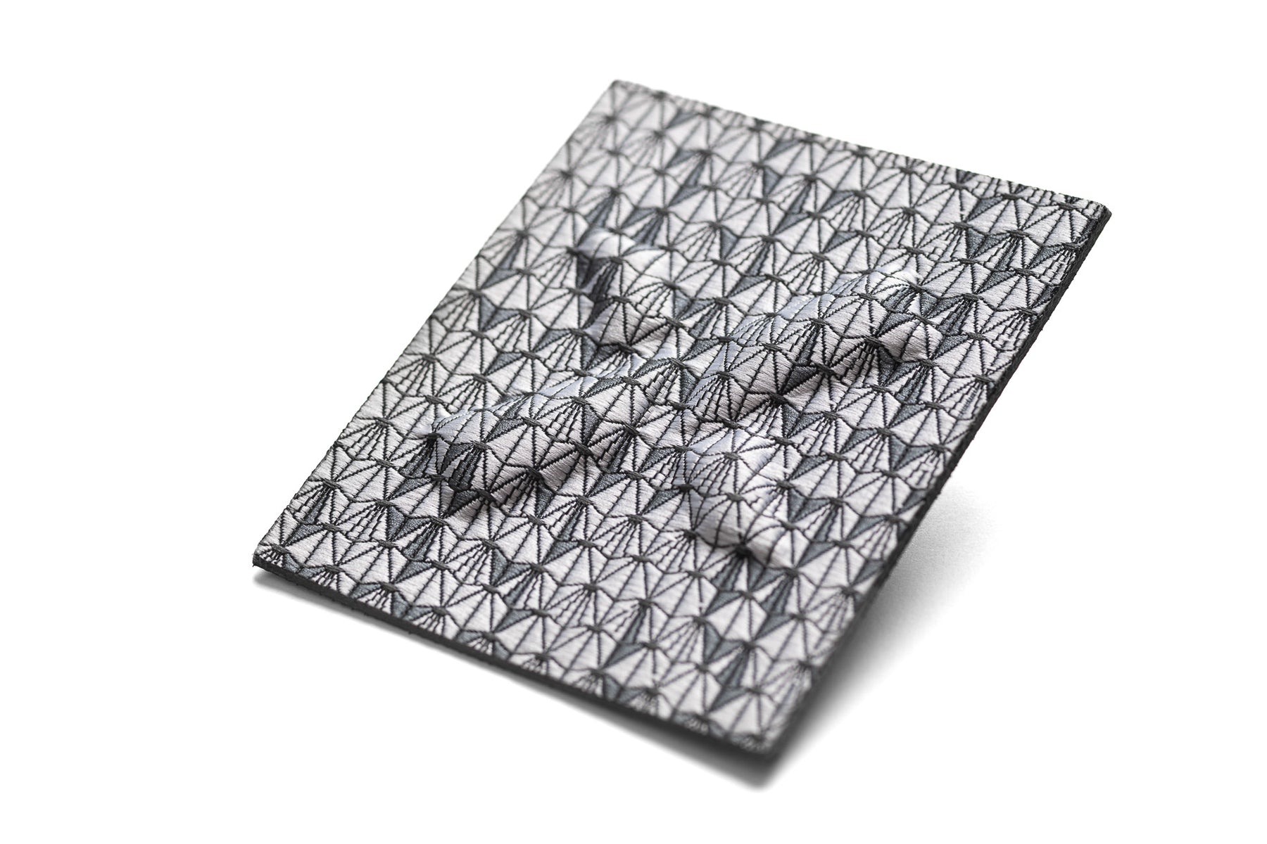 Etichetta tessuta fondo all over con logo in alta frequenza